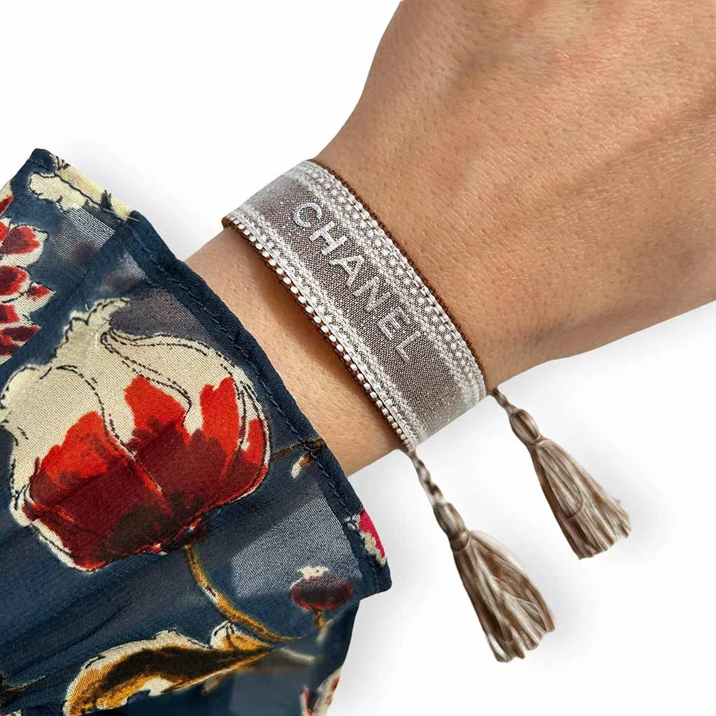 Coton – Polyester Marron – Argenté Ne pas porter sous l’eau Ajustable entre 16cm et 26cm / Largeur : 2cm