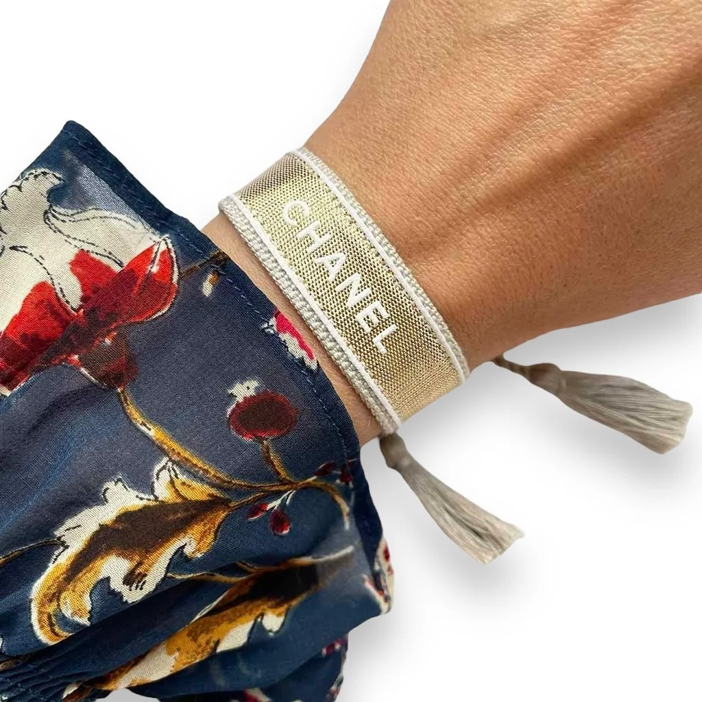 Coton – Polyester Gris – Doré – Blanc Ne pas porter sous l’eau Ajustable entre 16cm et 26cm / Largeur : 2cm