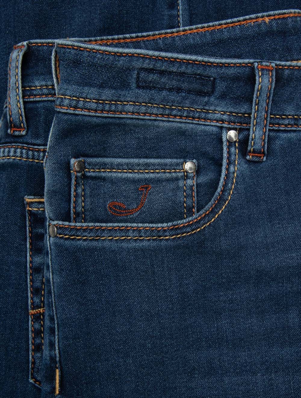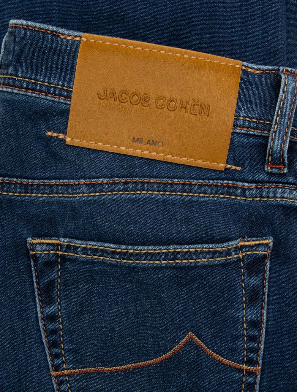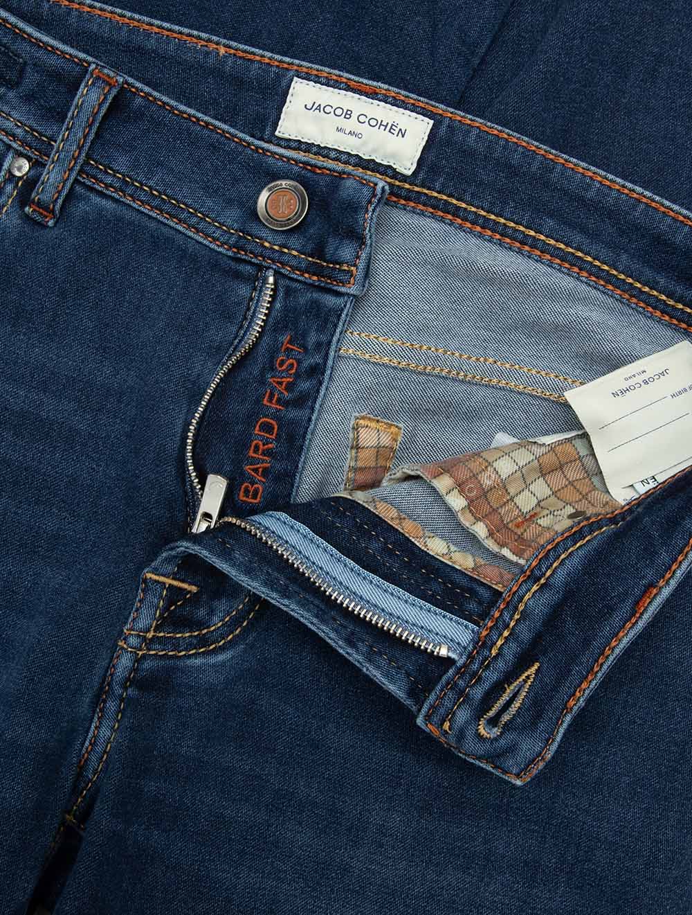 The Jacob Cohën Tan Badge Bard Jeans in Blue blend refined Italian tailoring with casual versatility. Crafted for comfort and timeless appeal, the Bard regular fit offers a relaxed yet elegant silhouette, enhanced with signature brand detailing. These Bard jeans are a versatile option that transitions smoothly from day-to-night, providing understated elegance in any setting.