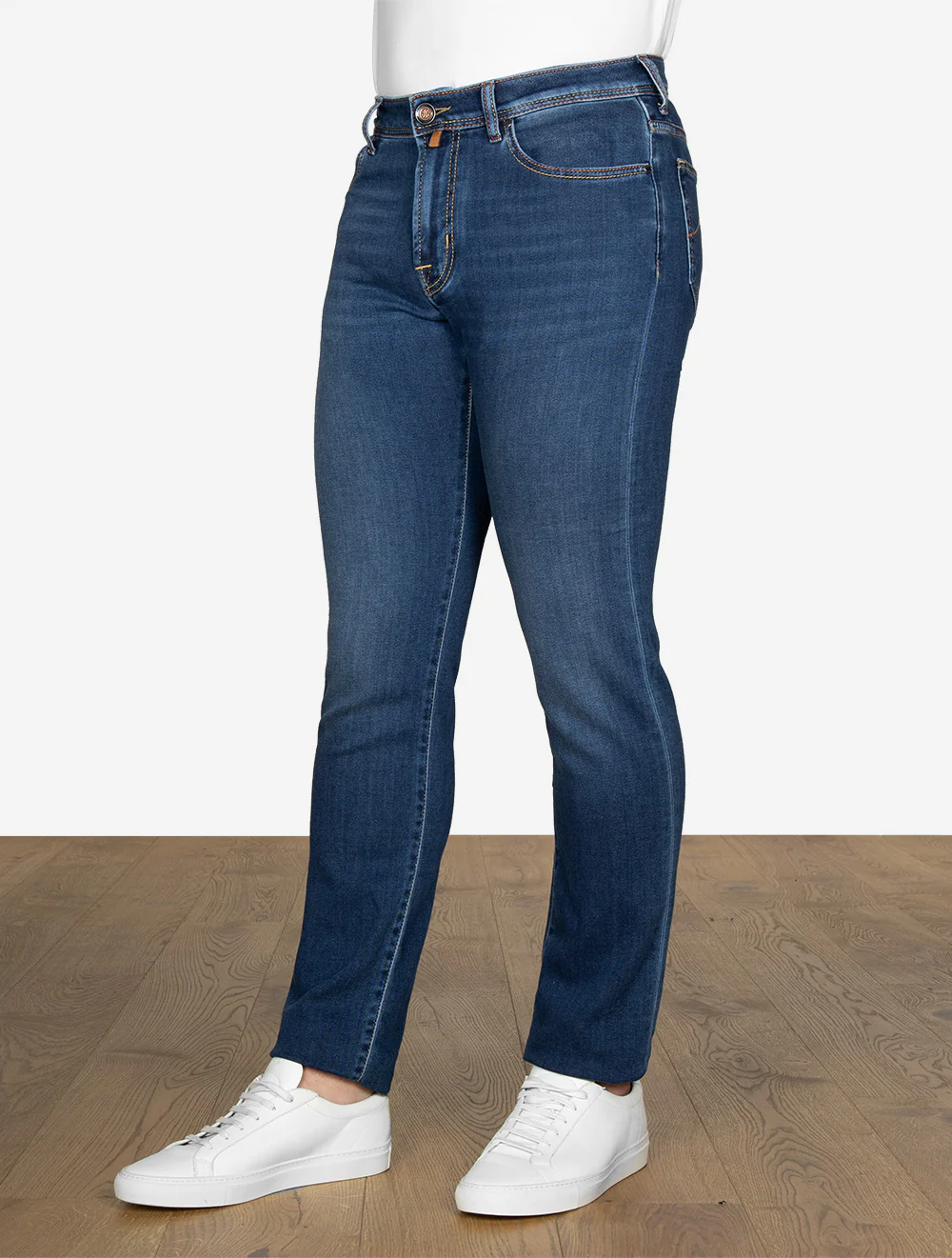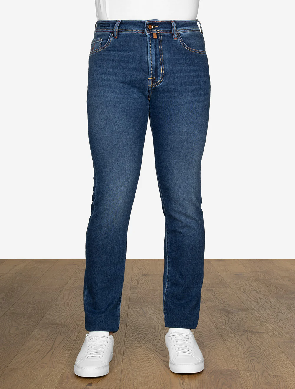 - Design: Classic five-pocket jeans with contrast stitching