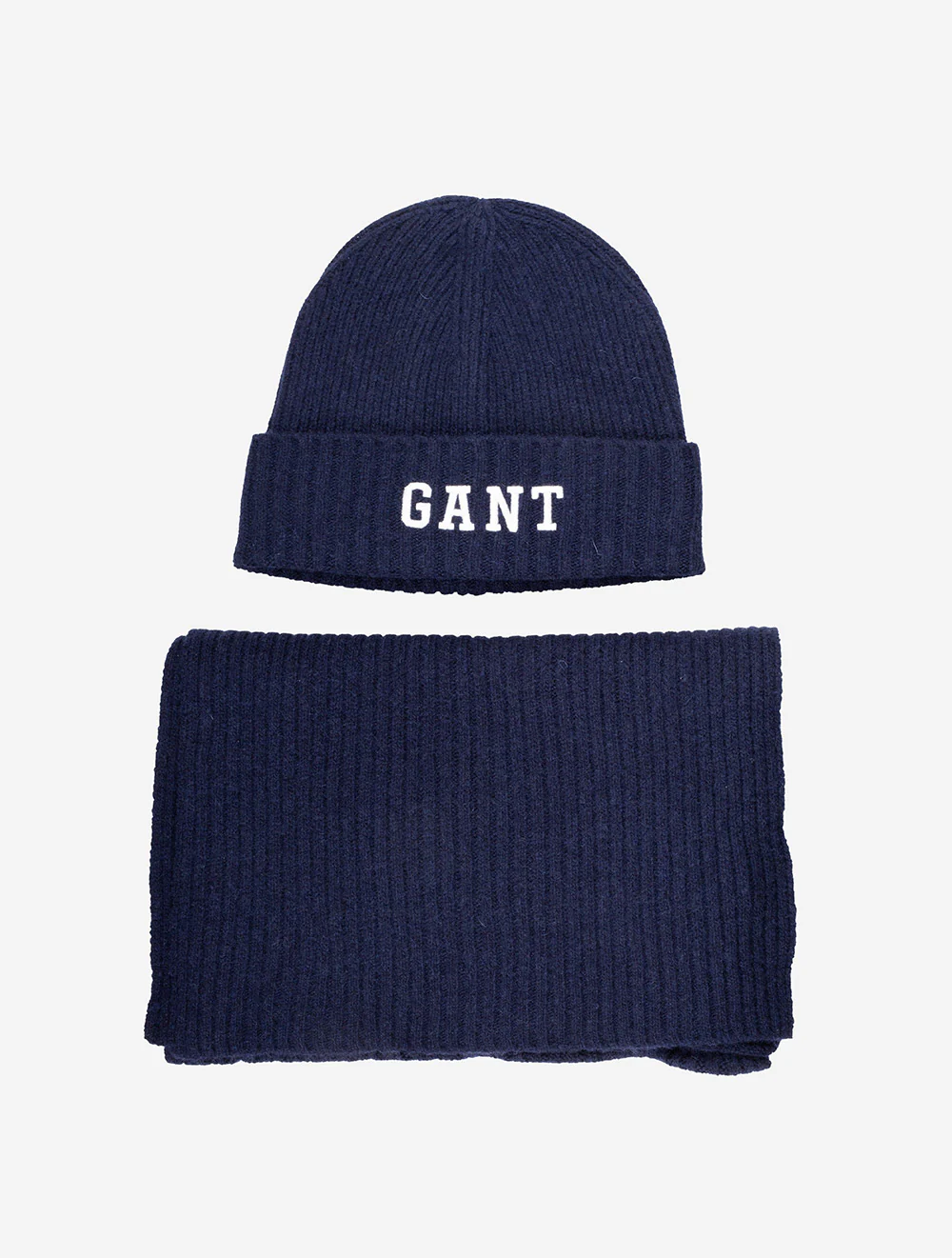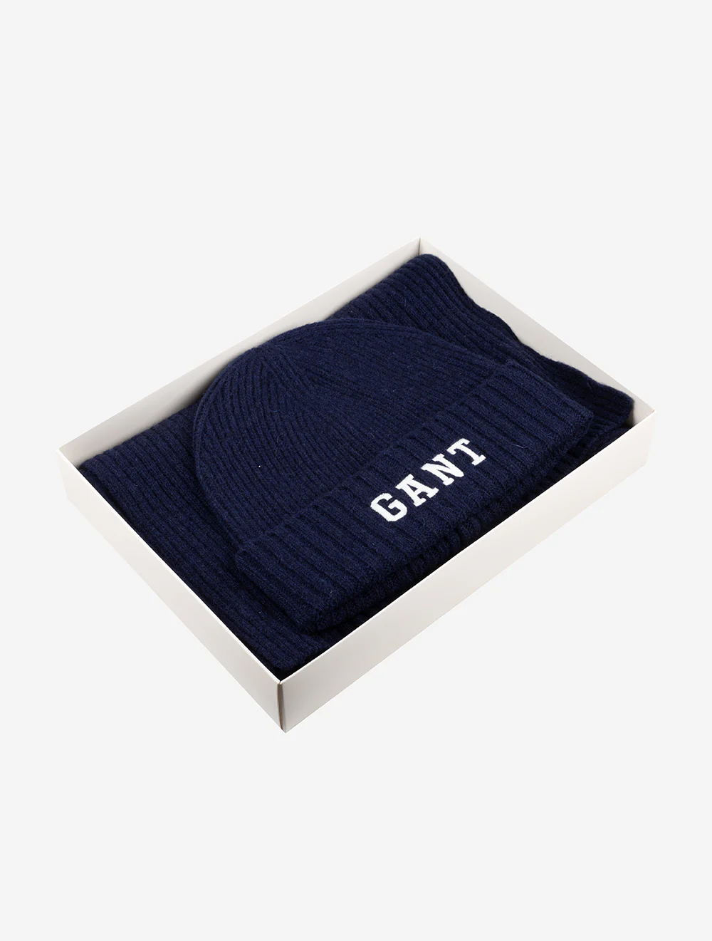 Gift giving just got cozier. The Beanie & Scarf Gift Set is the perfect winter pairing constructed out of a warm, wool-blend. Both pieces are crafted with a ribbed knit design and the beanie is embellished with a GANT graphic embroidered on the fold up.