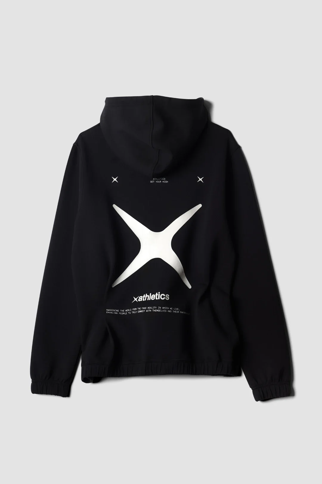 Sweat à capuche fabriqué en coton et polyester. Ourlet élastique et ajustable à la taille. Poche kangourou avec fermetures éclair. Logo centré à l’avant et à l’arrière.