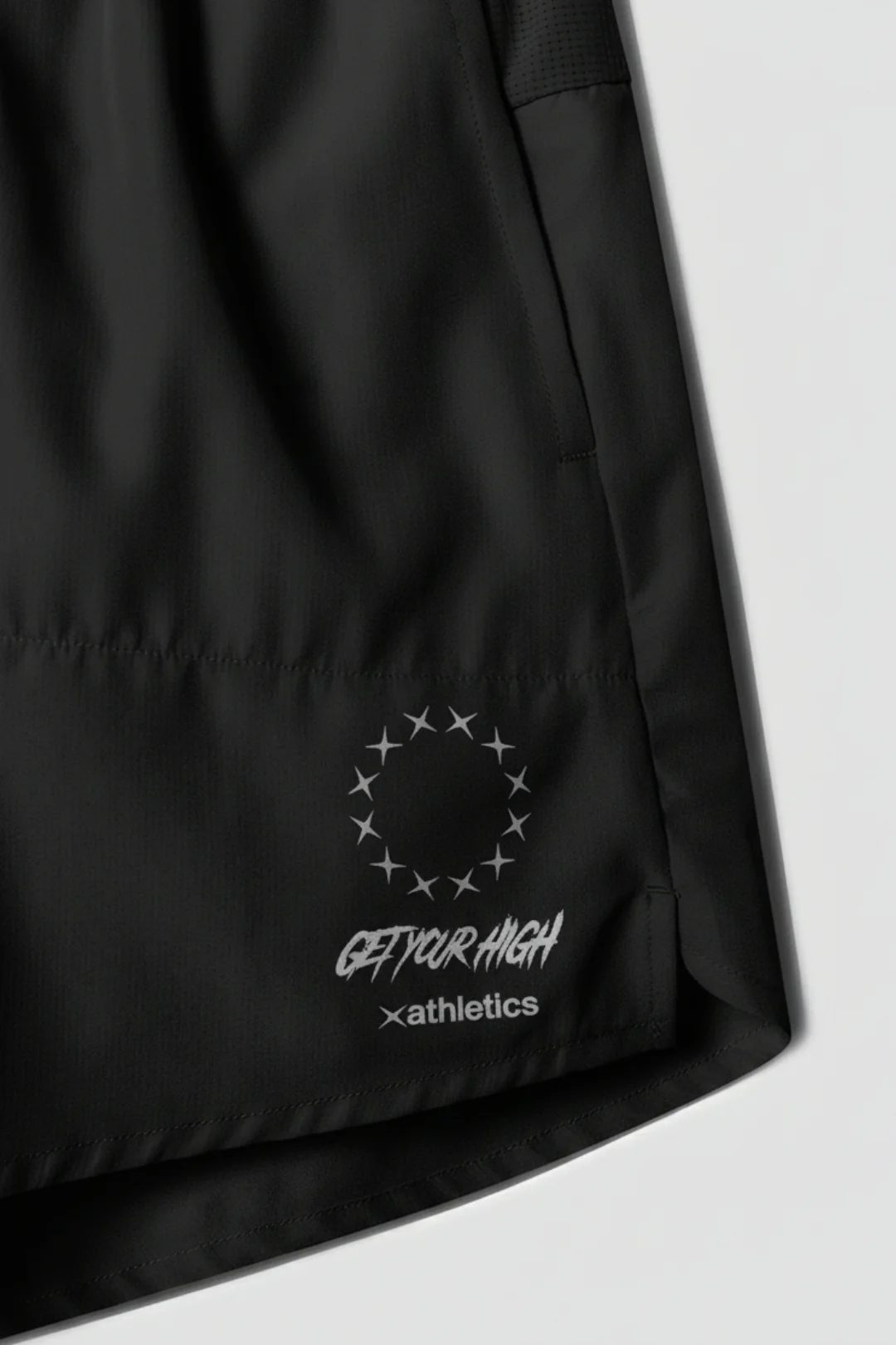 Short de sport fabriqué en polyester 100 % recyclé. Doté de poches latérales avant avec fermeture éclair. Logo réfléchissant en bas à gauche et à l’arrière en bas à droite. Ouverture latérale inférieure de 3 cm et cordon de serrage ajustable à la taille. Poche arrière supérieure centrée.