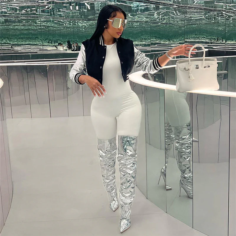 L’alliance du noir intense et de l’argent métallique transcende les codes du streetwear traditionnel. Une pièce pour celles qui écrivent leurs propres règles vestimentaires.