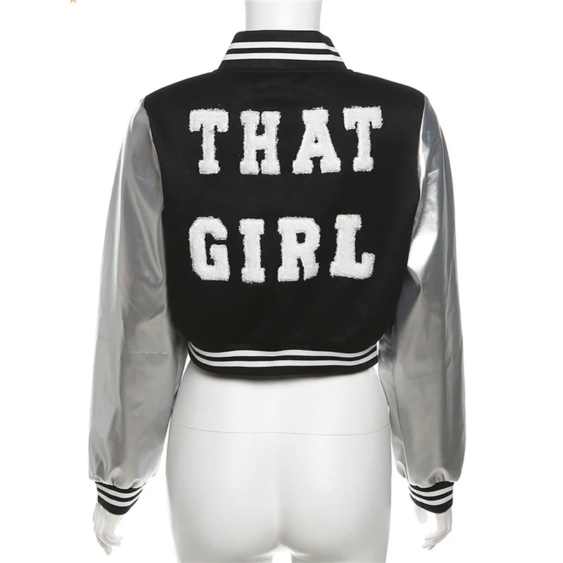 À l’avant-garde du style urbain, ce blouson teddy joue sur les matières avec une assurance rare. Les boutons-pression noirs s’harmonisent avec les finitions rayées, créant une silhouette structurée et affirmée. La signature « THAT GIRL » au dos transforme cette pièce en manifeste de style personnel.