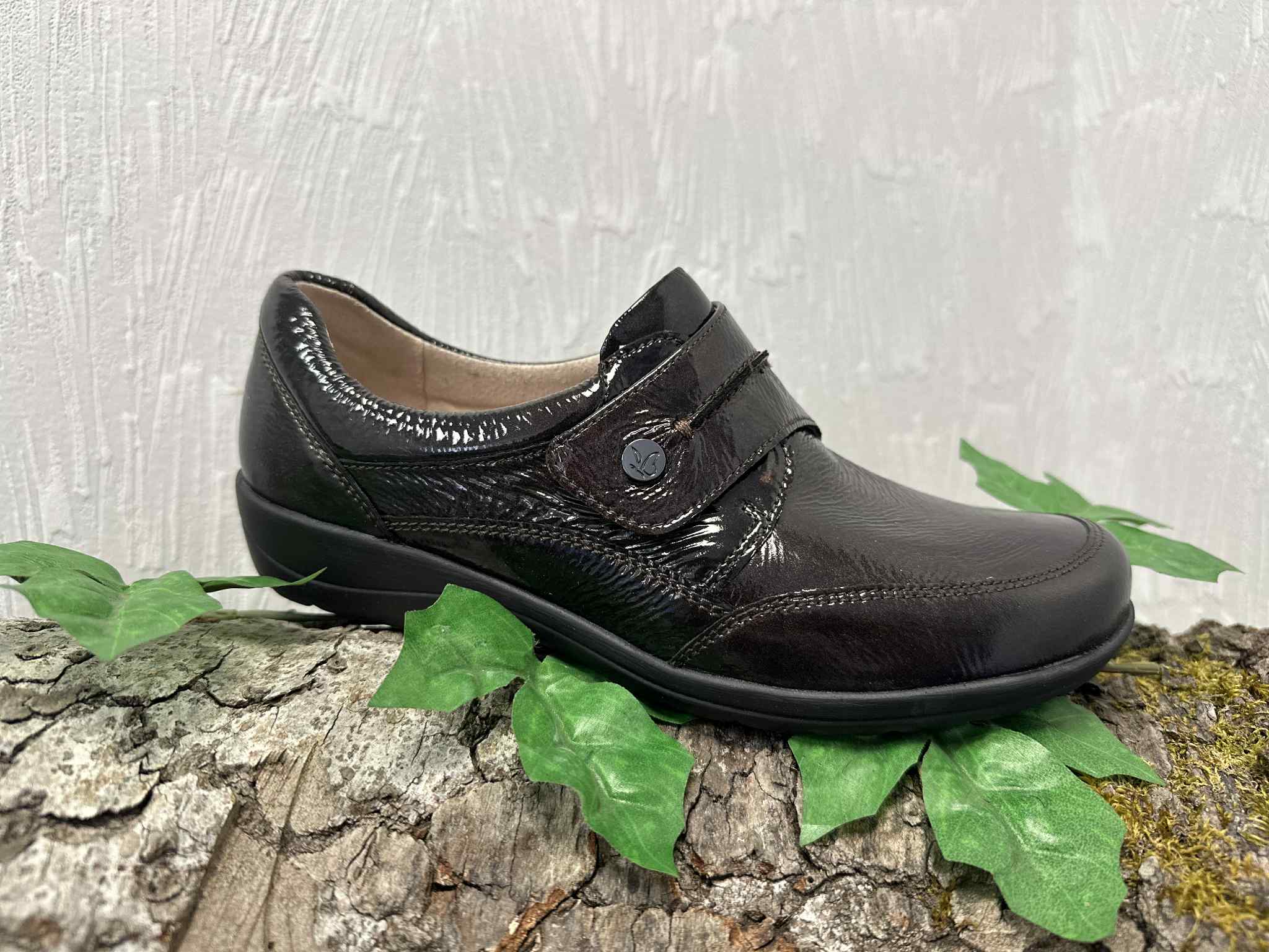 Chaussure femme en cuir souple à velcro.Semelle intérieure confort et amovible pour pouvoir y mettre vos semelles orthopédiques.
