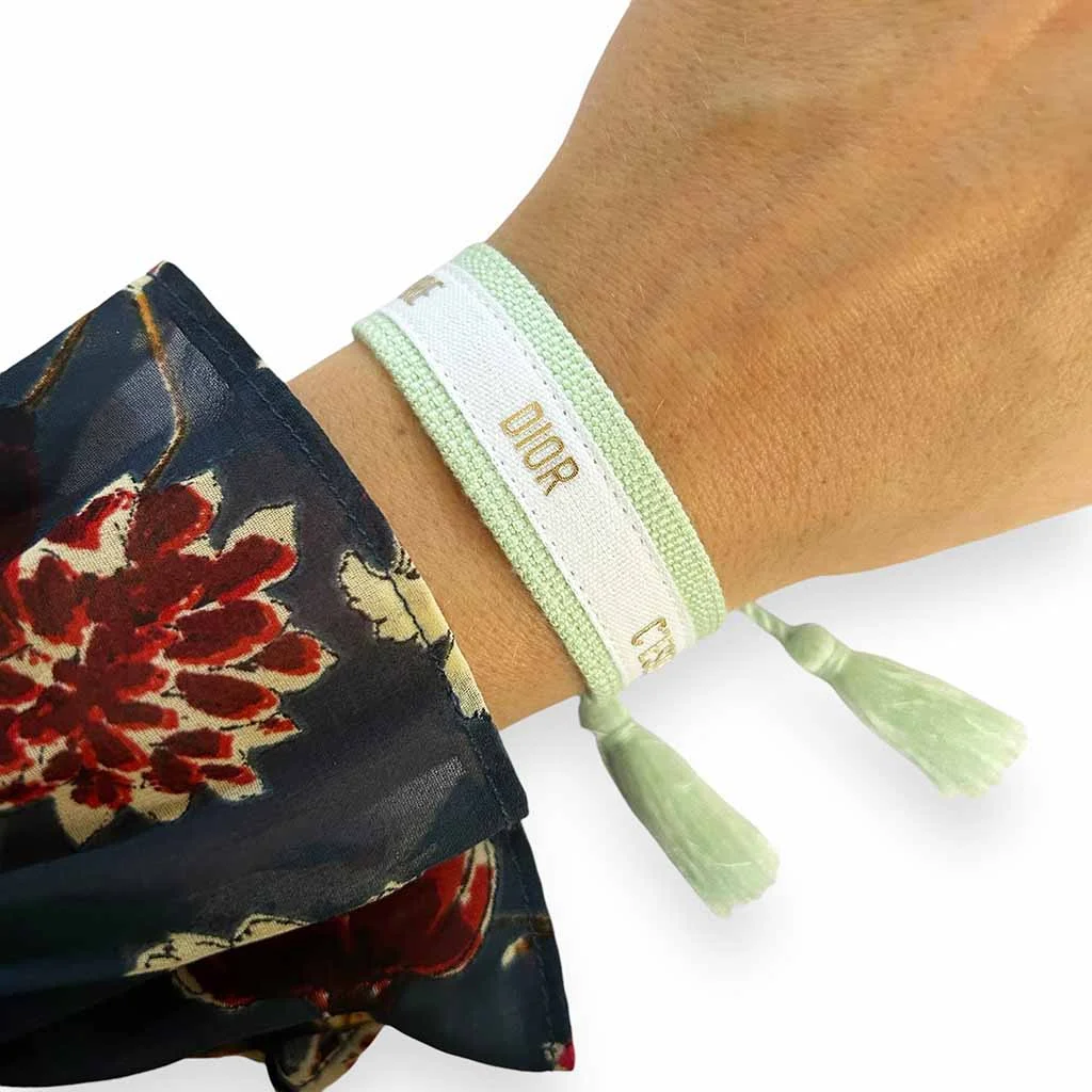 Coton Vert – Blanc – Doré Ne pas porter sous l’eau Ajustable entre 16cm et 26cm / Largeur : 2cm