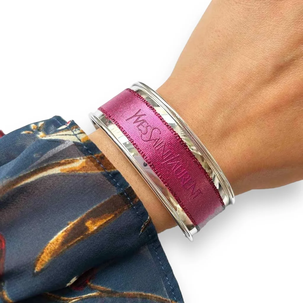 Laiton vernis – Polyester Argenté clair – Violet Ne pas porter sous l’eau Ajustable / Largeur : 24,5mm