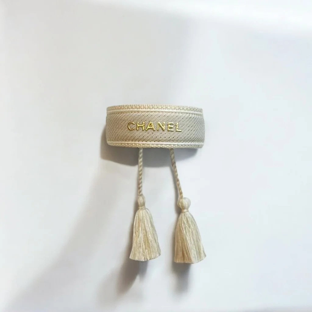 Coton – Polyester Beige – Crème – Doré Ne pas porter sous l’eau Ajustable entre 16cm et 26cm / Largeur : 2cm