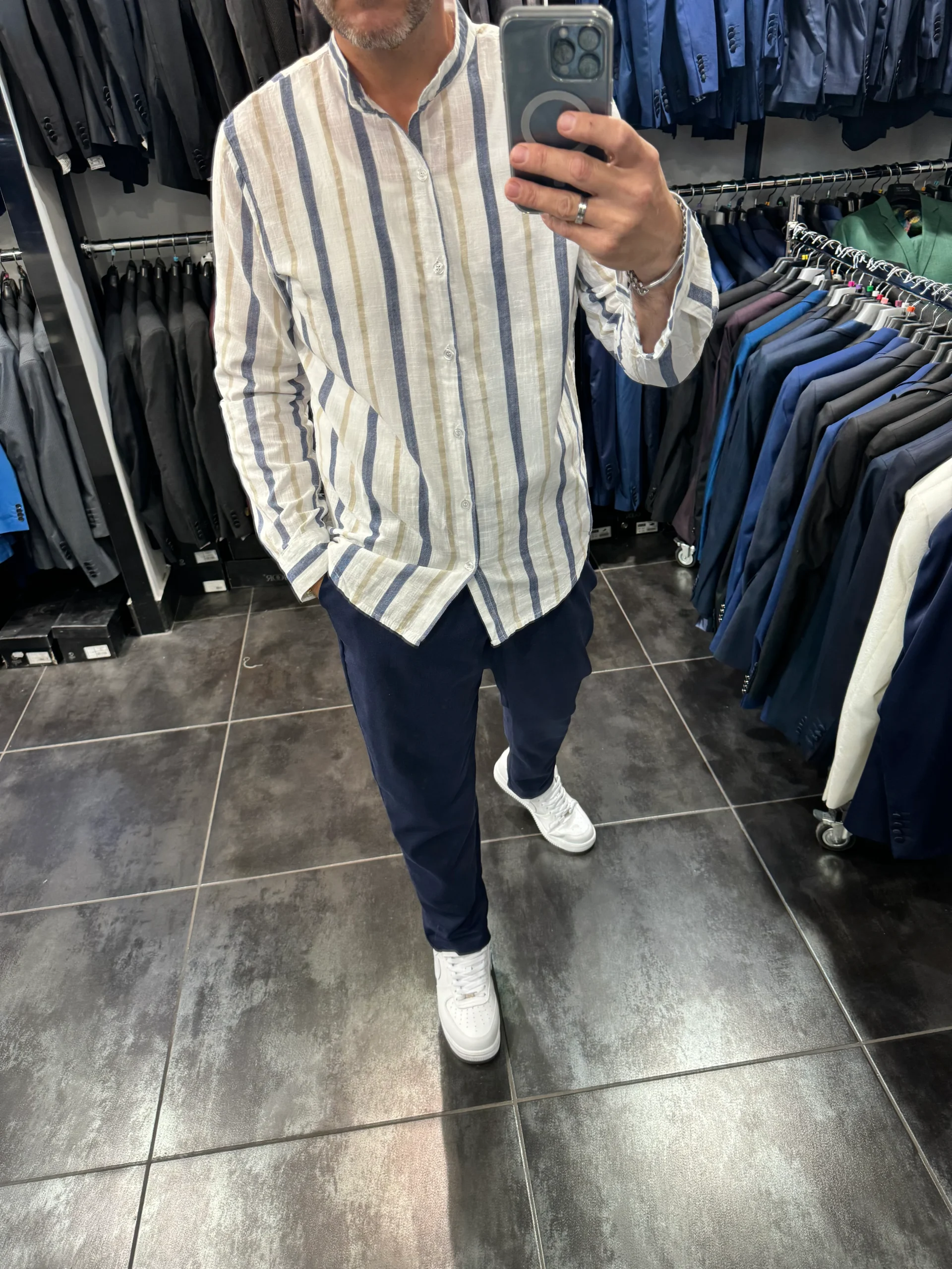 Chemise col mao rayée Coupe décontractée 100%Coton Le mannequin mesure 1m82 Il porte du M Conseil : Idéal pour la saison, peut se porter aussi bien avec un jean ou un chino