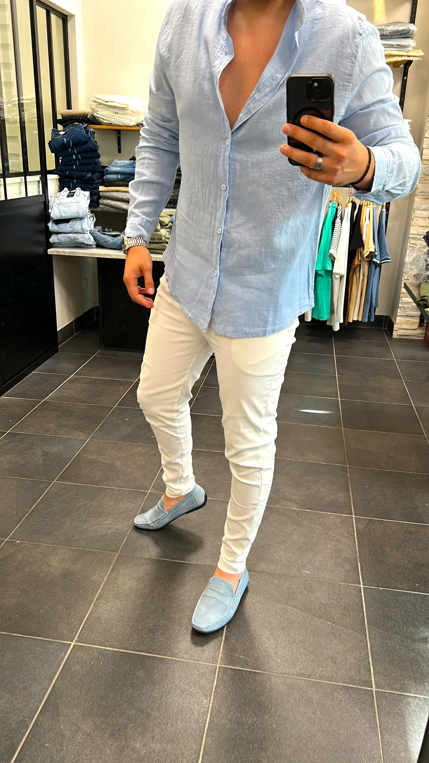 Chemise Mao coton/ Lin Ciel je porte un L je mesure 1M83 coupe droite Matière: coton/ Lin Chemise indispensable pour l’été en coton et lin idéal pour la saison !