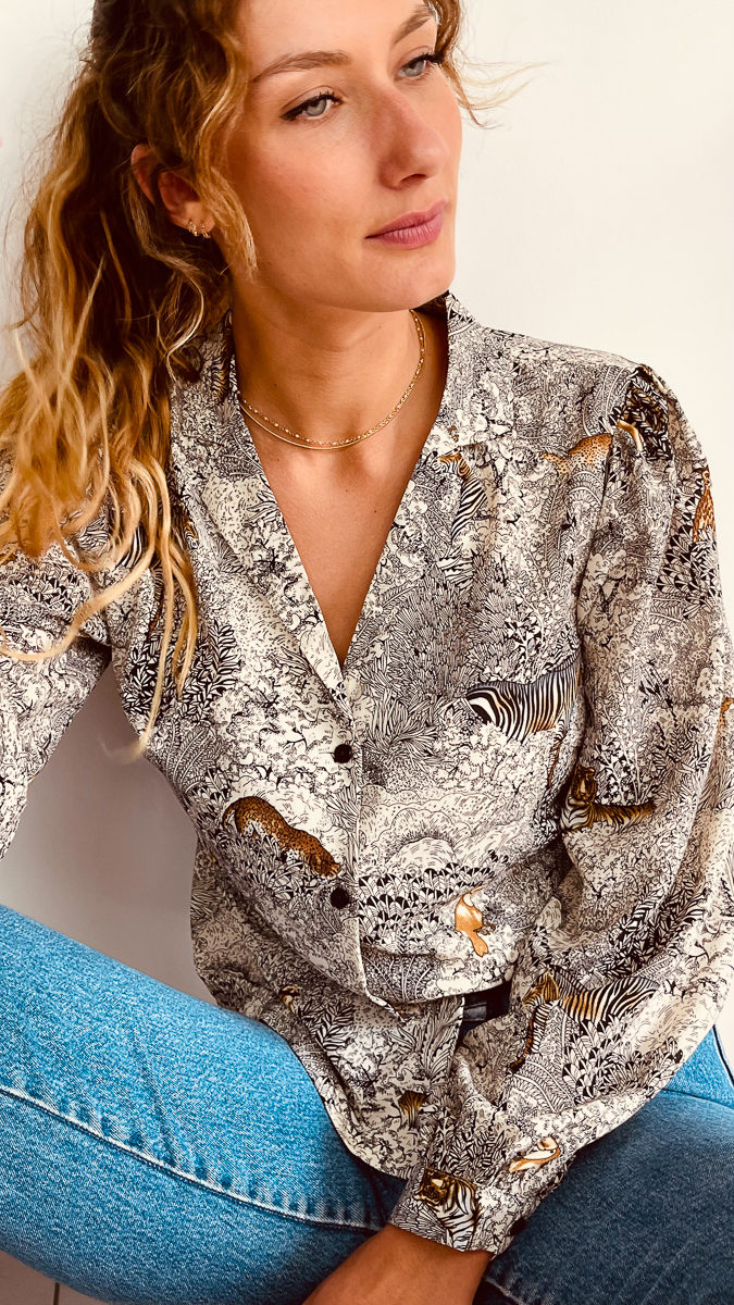 La silhouette : Cette blouse voile de peau est très agréable à porter. Son imprimé inspiré savane, Afrique