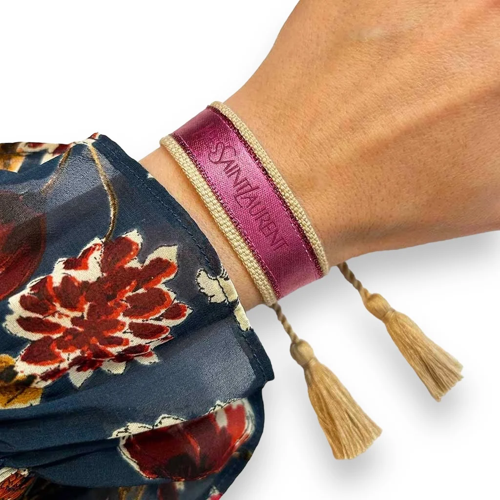 Coton – Polyester Beige – Violet Ne pas porter sous l’eau Ajustable entre 16cm et 26cm / Largeur : 2cm