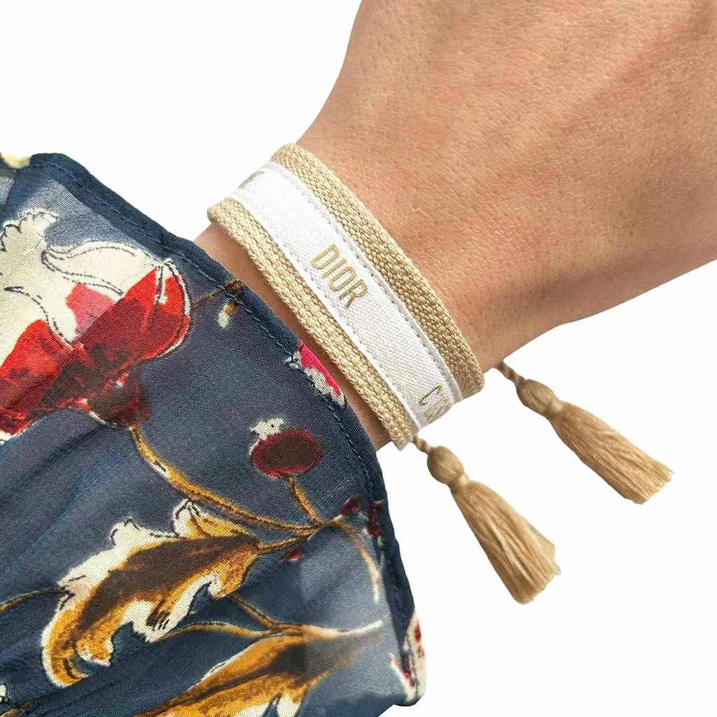 Coton Beige – Blanc – Doré Ne pas porter sous l’eau Ajustable entre 16cm et 26cm