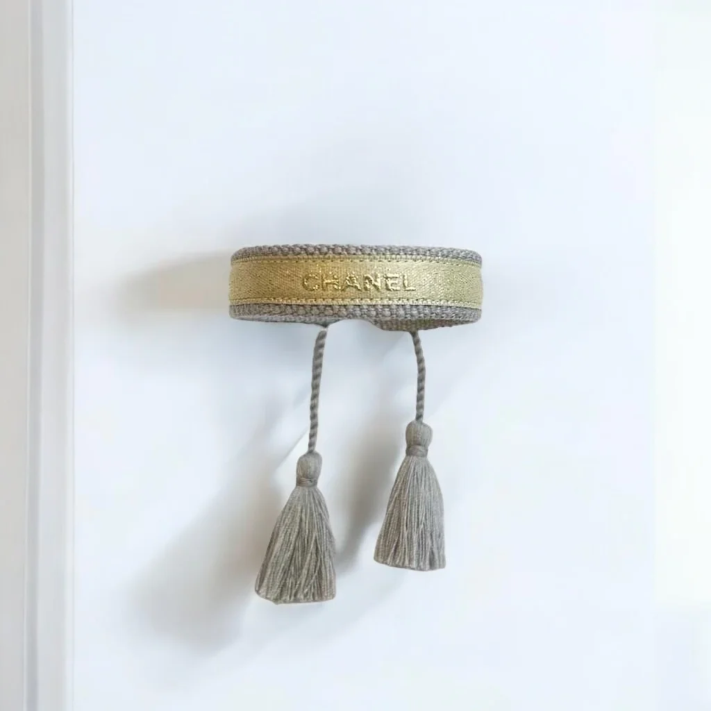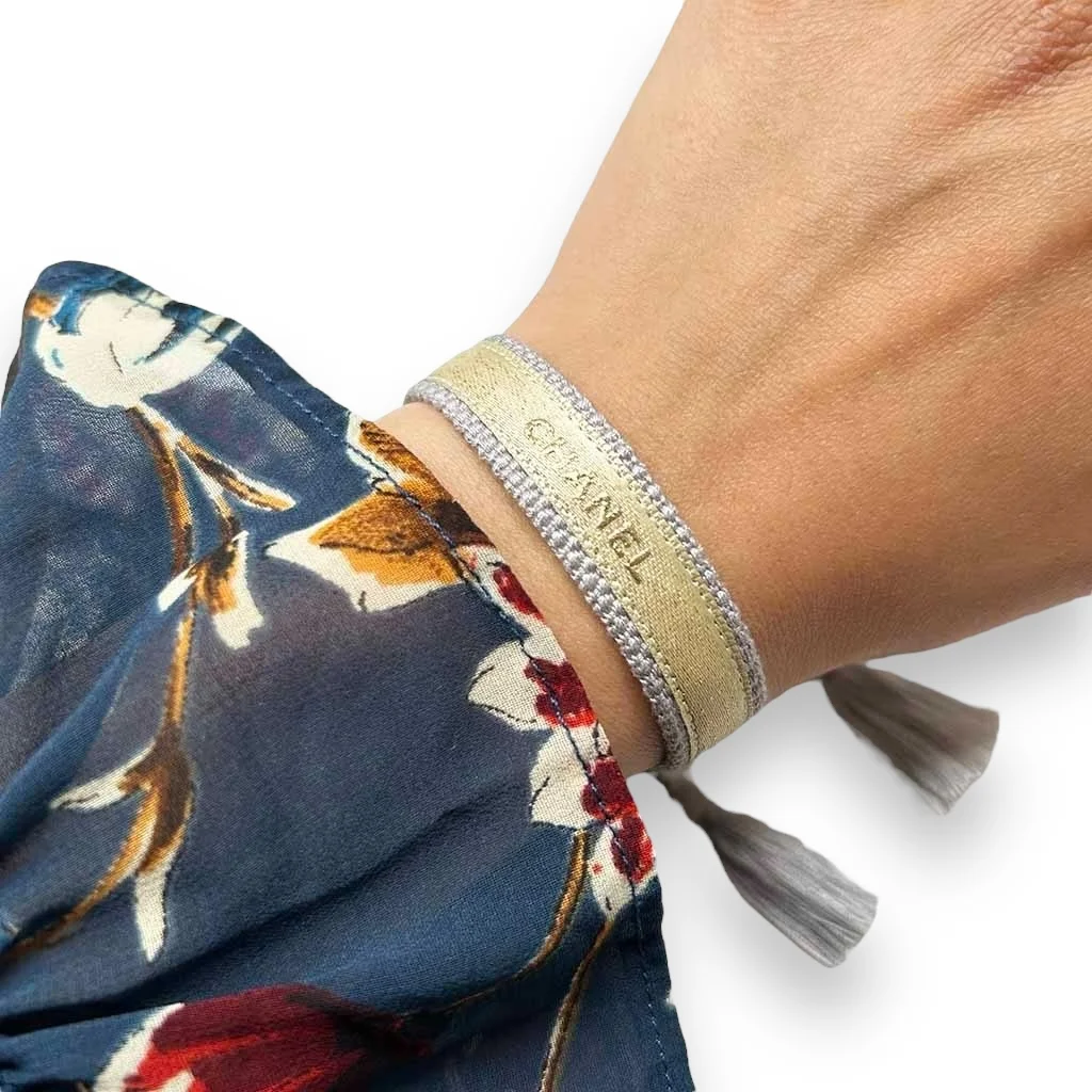 Coton – Polyester Gris – Doré Ne pas porter sous l’eau Ajustable entre 17cm et 25cm / Largeur 1,3cm