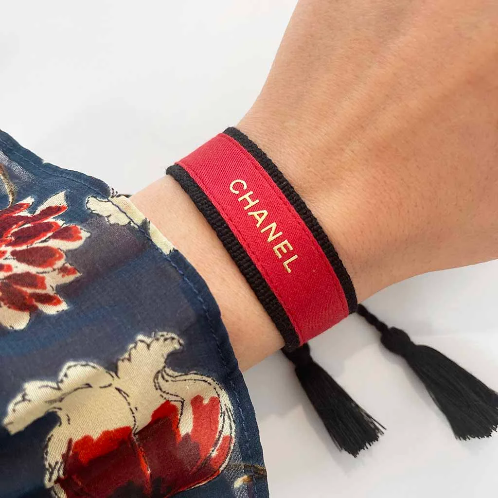 Coton Noir – Rouge – Doré Ne pas porter sous l’eau Ajustable entre 16cm et 26cm / Largeur : 2cm