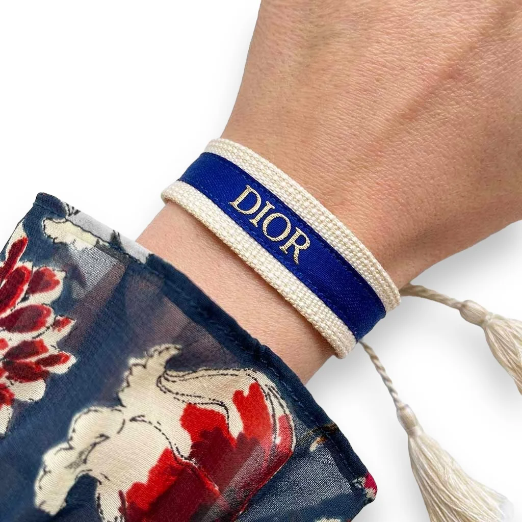 Coton – Polyester Beige – Bleu – Doré Ne pas porter sous l’eau Ajustable entre 16cm et 26cm / Largeur : 2cm