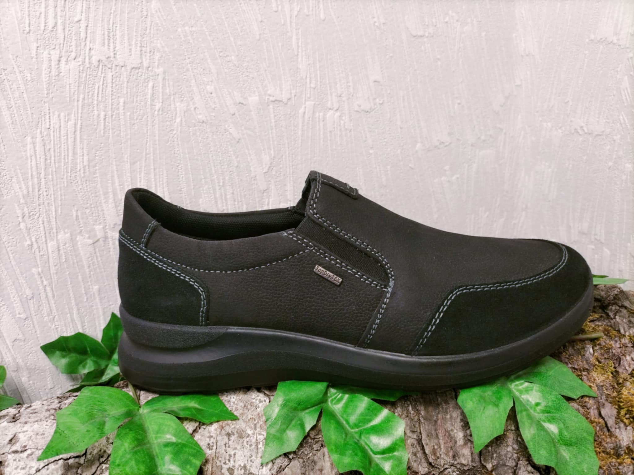 Mocassin souple et léger en cuir avec 2 élastiques sur les cotés .Semelle intérieure amovible .Membrane imperméable .