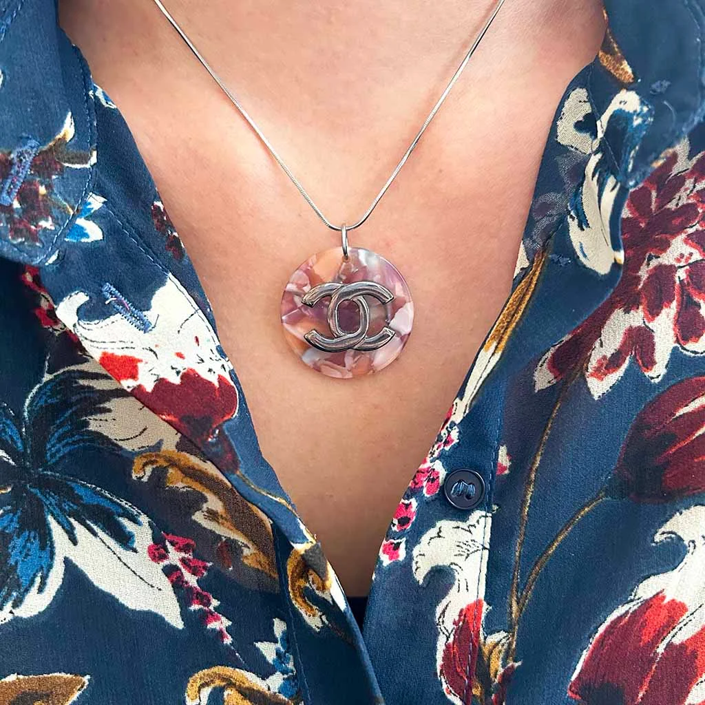 Acier inoxydable – Acétate – Métal Argenté – Rose Ne pas porter sous l’eau 45cm