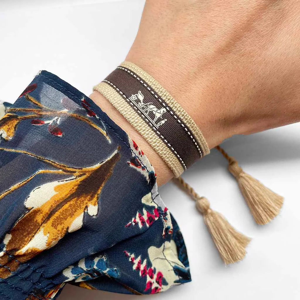 Coton Beige – Blanc – Marron Ne pas porter sous l’eau Ajustable entre 16cm et 26cm / Largeur : 2cm
