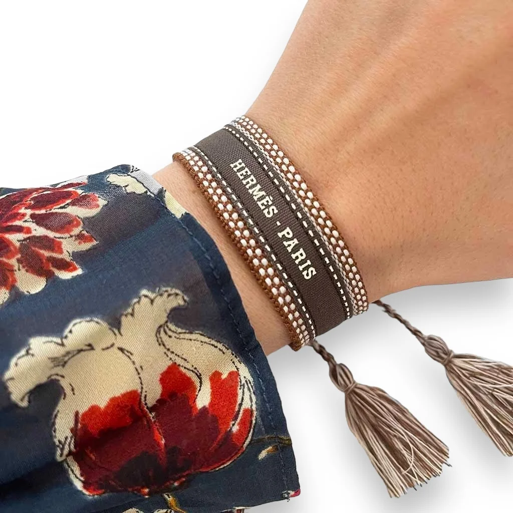 Coton Marron – Blanc Ne pas porter sous l’eau Ajustable entre 16cm et 26cm / Largeur : 2cm