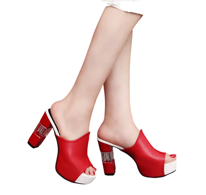 Mules rouges en cuir synthétique à talons hauts