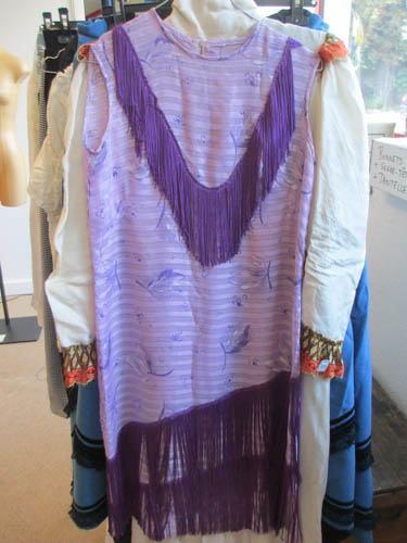 Robe Charleston à 3 rangées de longues franges et motifs fleuris, en tissu synthétique et franges, de couleur principale violette en camaïeu
