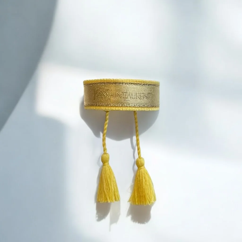 Coton – Polyester Jaune – Doré Ne pas porter sous l’eau Ajustable entre 16cm et 26cm / Largeur : 2cm