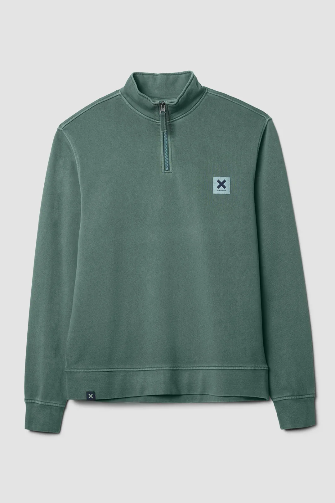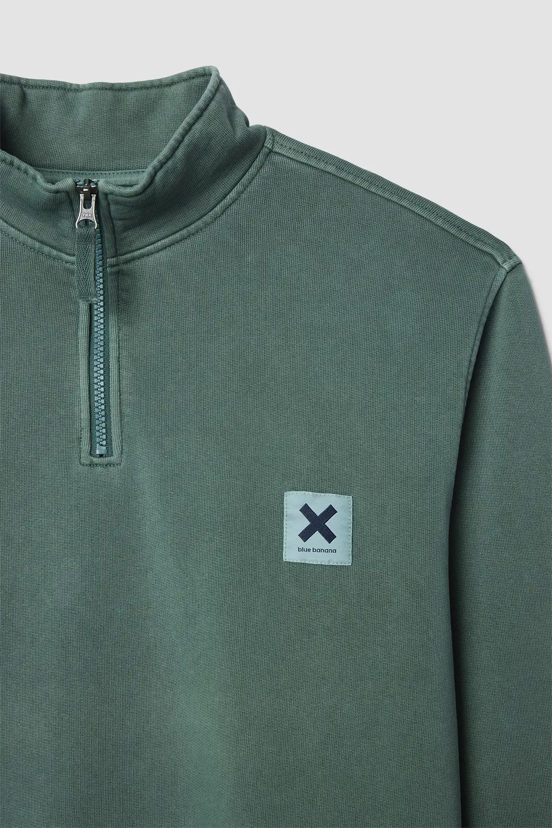 Sweat-shirt effet délavé avec logo en forme d’étiquette sur la poitrine. Confectionné en coton 100% biologique. Coupe regular fit et col zippé.