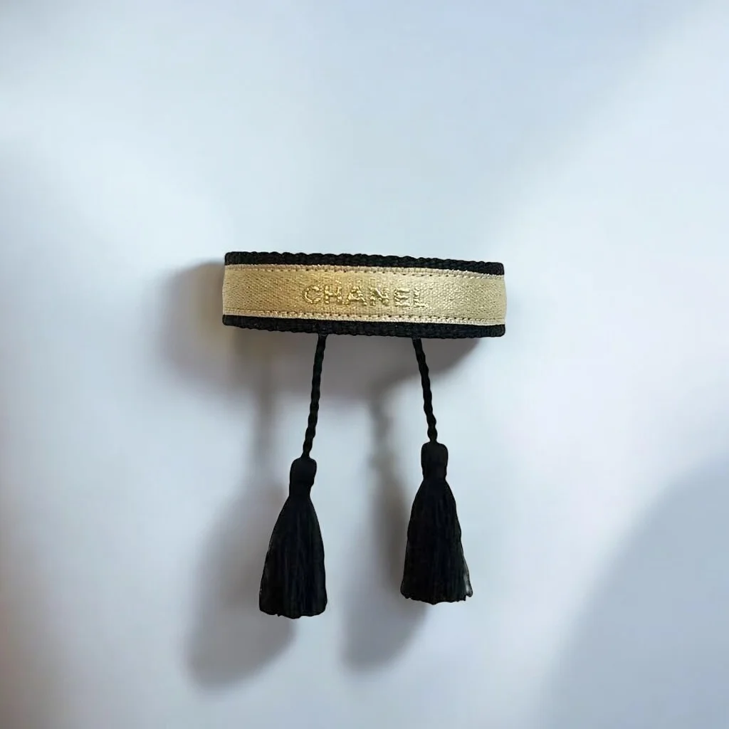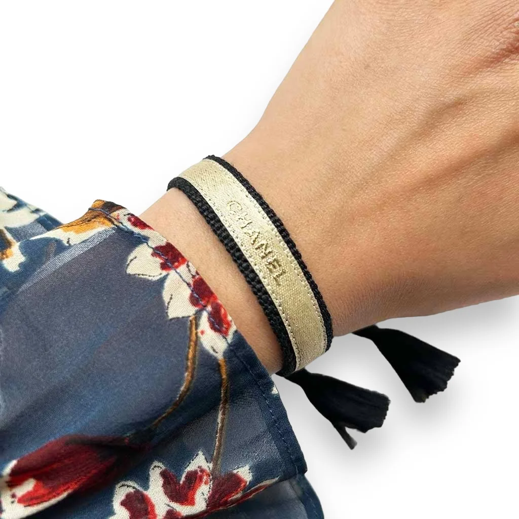 Coton – Polyester Noir – Doré Ne pas porter sous l’eau Ajustable entre 17cm et 25cm / Largeur 1,3cm