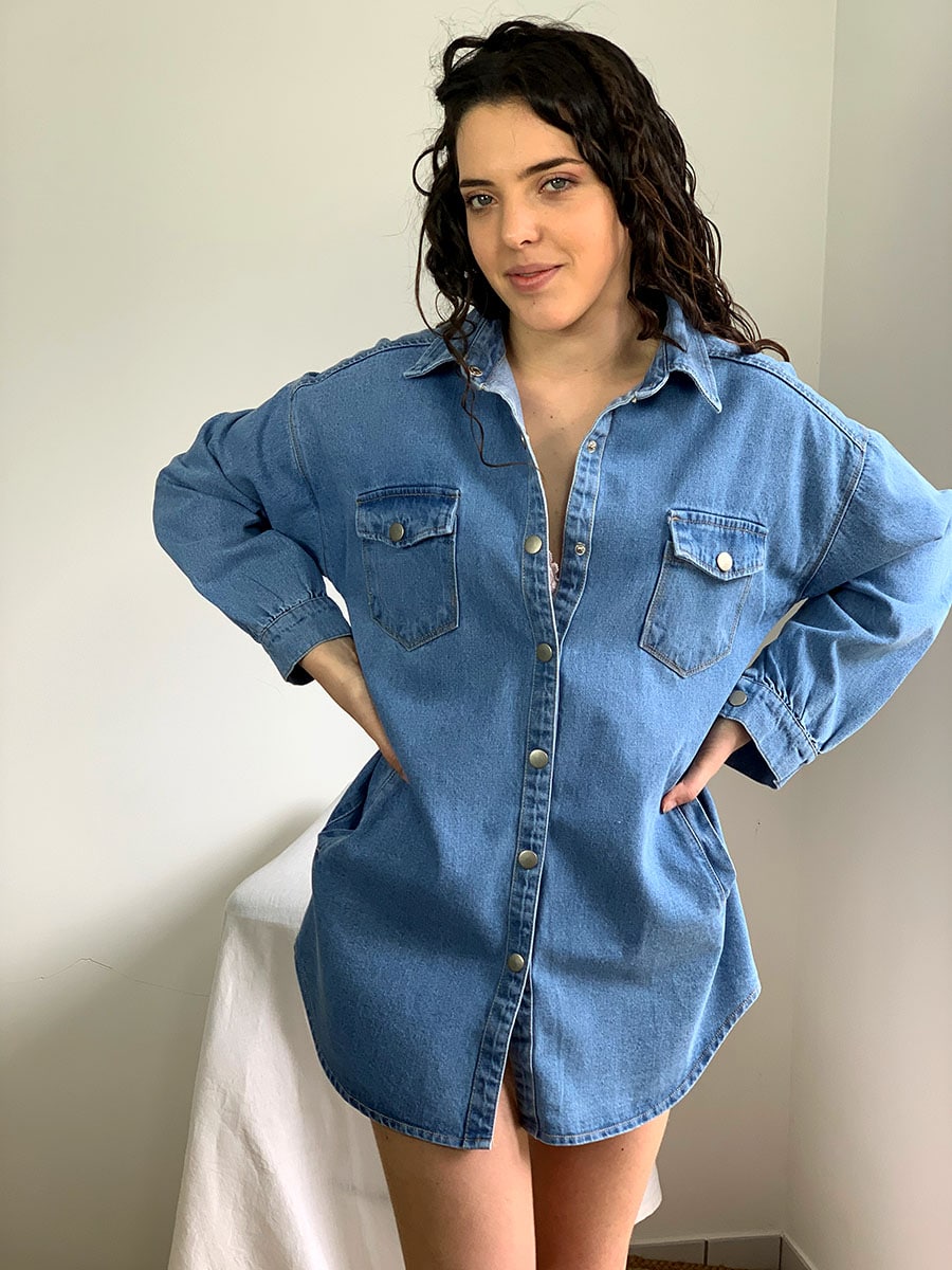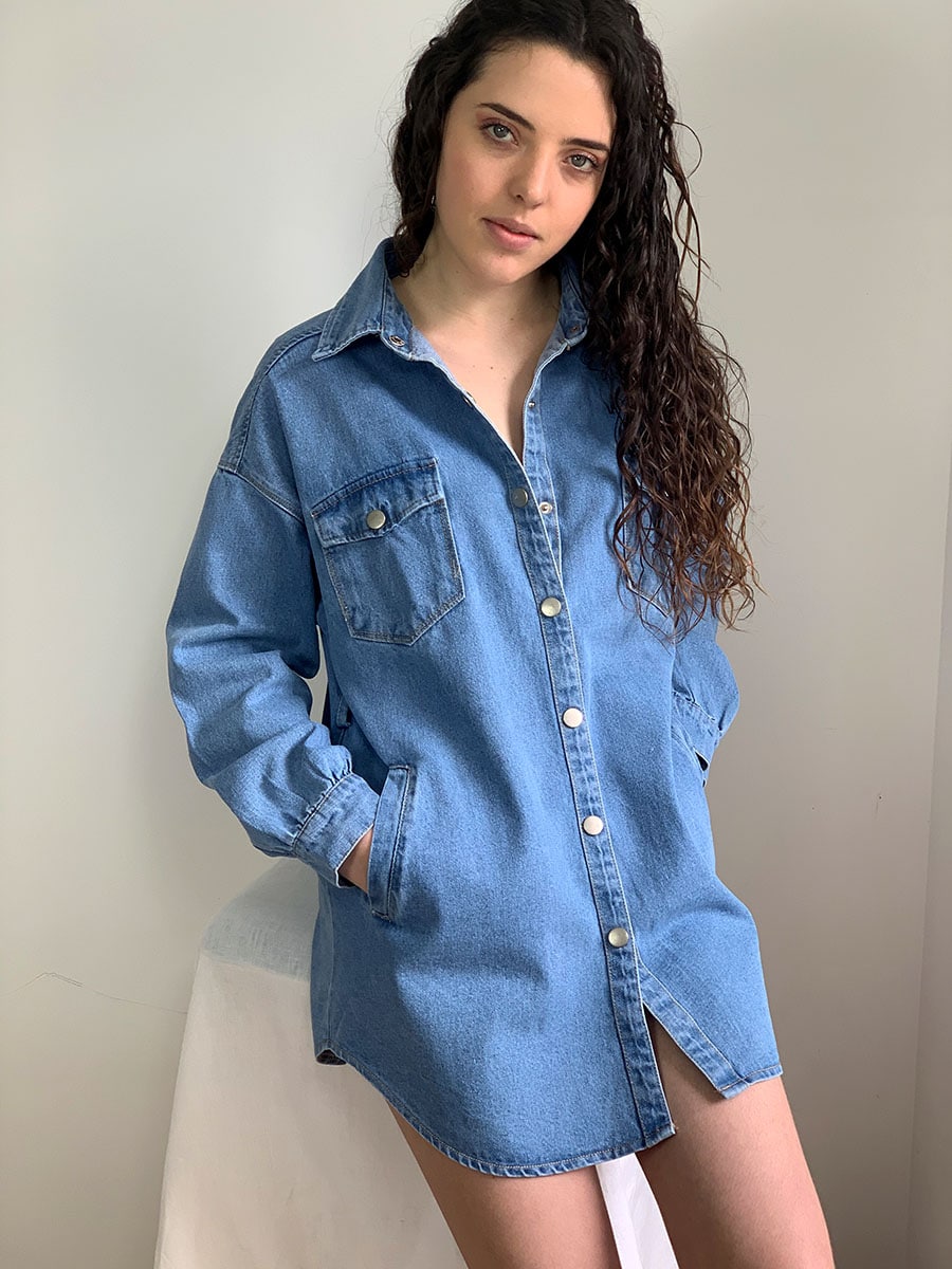 L’indispensable de tout dressing : la veste longue en Jean ! Entre la veste et la chemise oversize, son col classique vous permet de choisir entre le sage, le grand décolleté ou de la garder ouverte pour montrer vos beaux atours. Elle se ferme grâce à des boutons pression en métal.