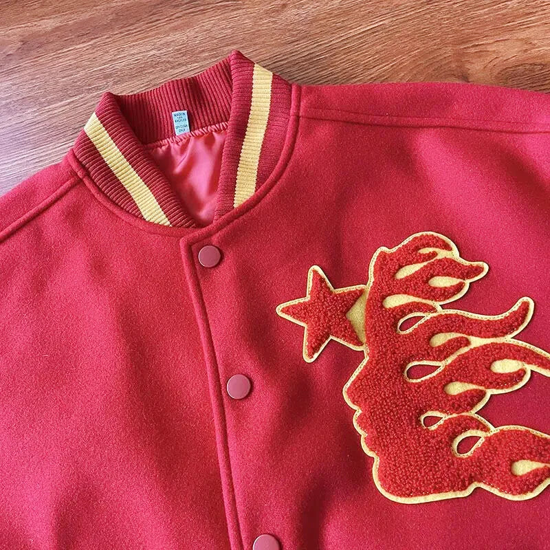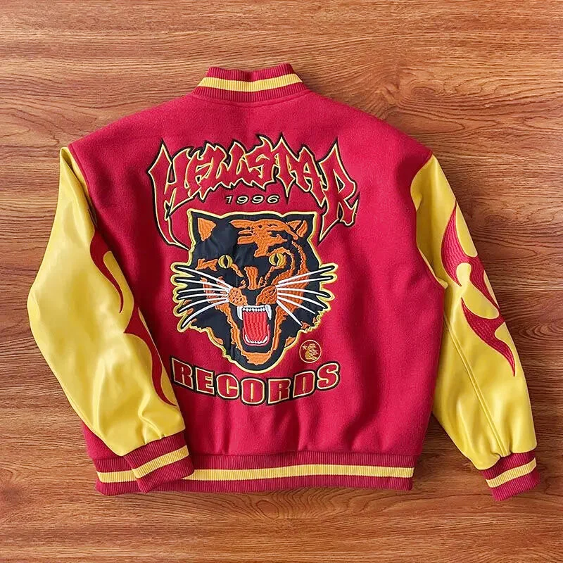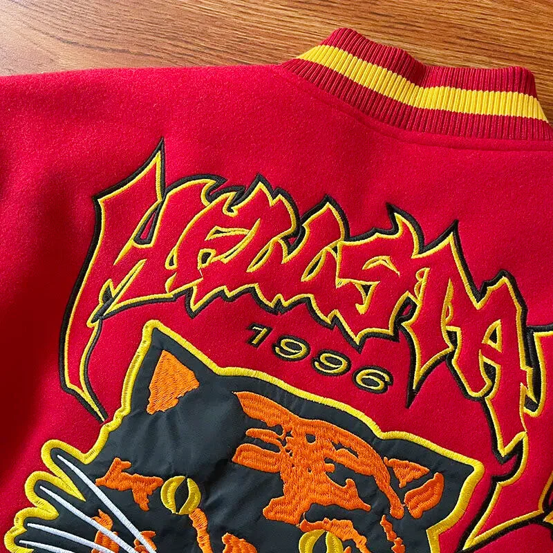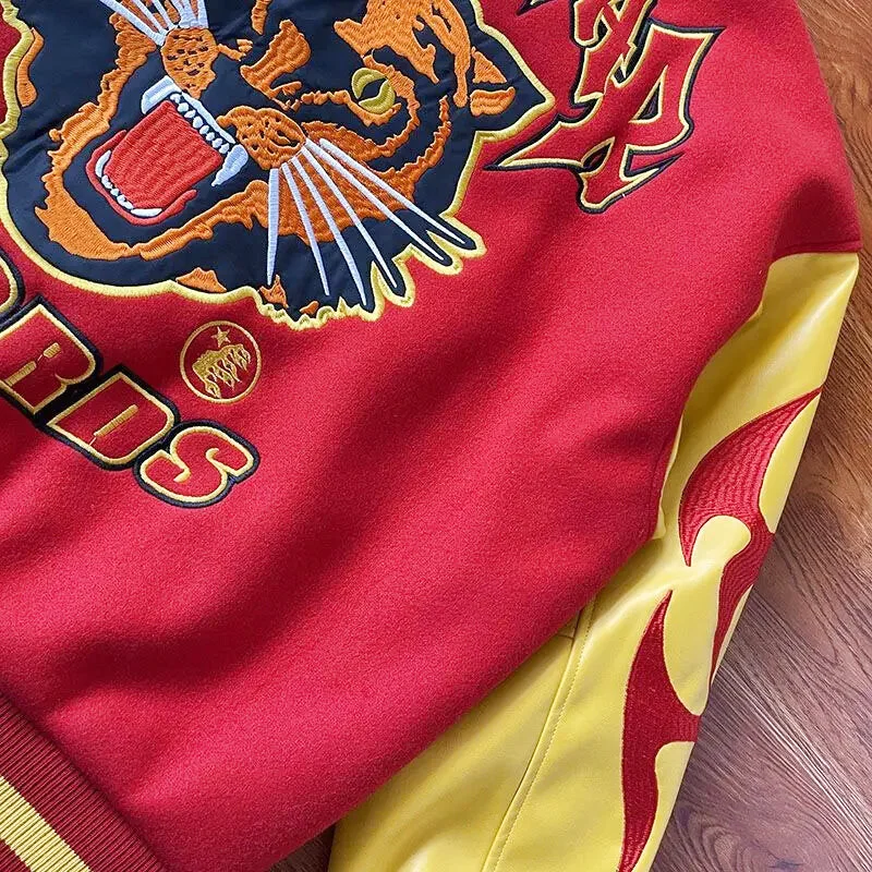 Le blouson teddy, aussi appelé varsity jacket, est une icône de la mode américaine. La Veste Américaine Y2K reprend cet héritage avec un twist moderne. Les détails finement brodés, tels que le tigre majestueux sur le dos et les flammes dynamiques sur les manches, font de chaque exemplaire une pièce unique. Conçue pour tous, elle transcende les genres et les styles.