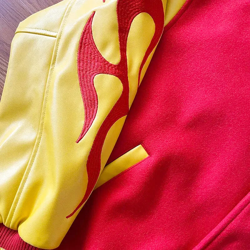 Un flash-back stylé vous attend avec notre veste teddy emblématique. La Veste Américaine Y2K est le must-have pour celles et ceux qui veulent revivre l’ère vibrante des années 90. Rouge éclatant, manches jaunes audacieuses – cette pièce est bien plus qu’une simple veste; c’est un billet retour pour une époque où l’audace et le panache régnaient en maîtres.