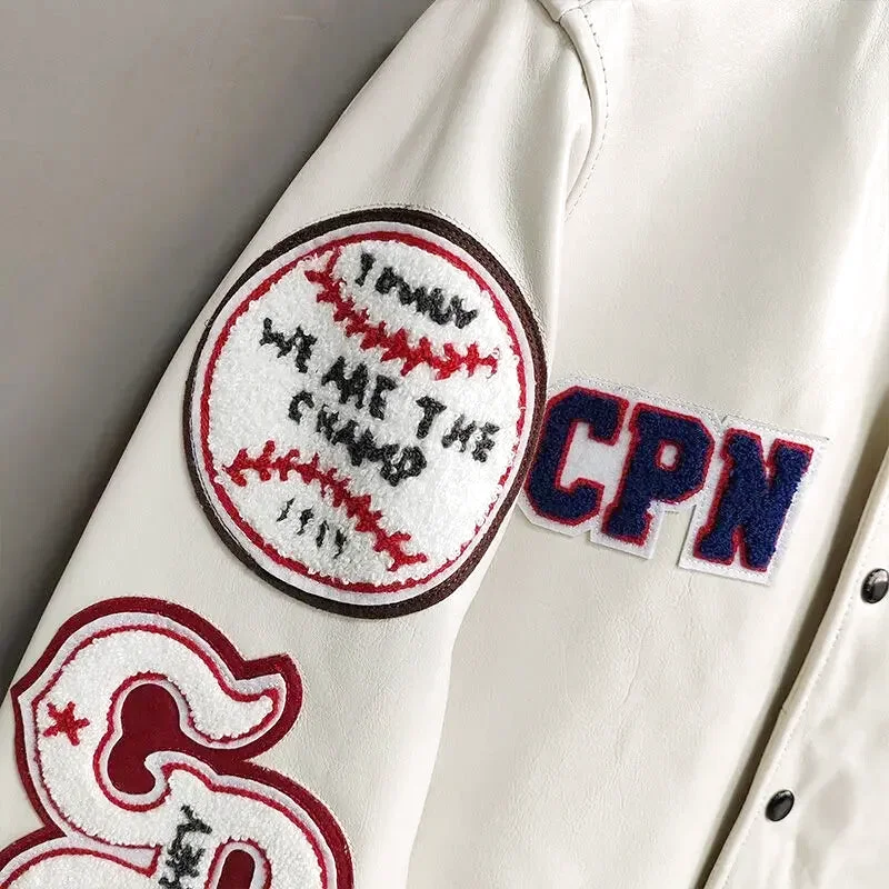 Cette pièce est bien plus qu’un simple blouson; c’est une déclaration de style. Chaque détail a été pensé pour refléter l’aura des équipes de baseball les plus légendaires. Le blanc éclatant offre un fond parfait pour les symboles américains brodés, faisant de cette veste une œuvre d’art portable.
