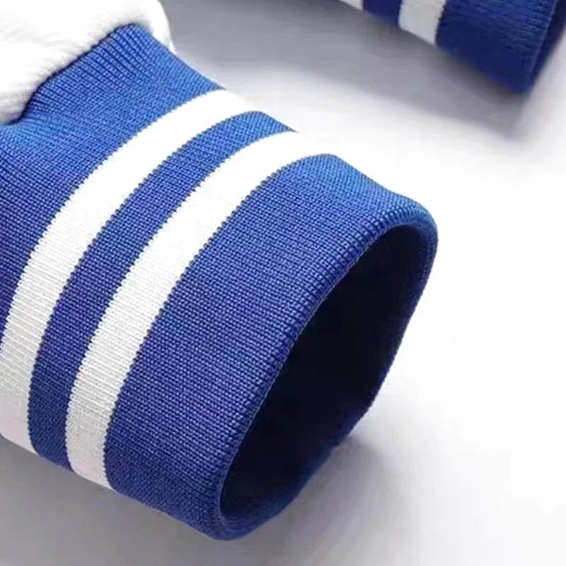 Optez pour le bleu dynamique et ses manches contrastantes blanches ou embrassez le chic intemporel du noir et blanc. Chaque veste arbore fièrement un smiley brodé, symbole universel de bonne humeur, qui apporte une note d’excentricité à ce modèle classique.