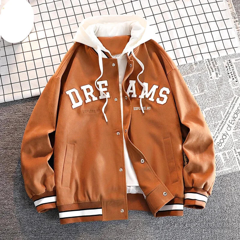Quand le classique rencontre la modernité, cela donne naissance à la Veste Teddy Capuche. Ce blouson varsity iconique s’offre une touche d’originalité avec son inscription « dreams » qui capte le regard. Idéale pour les esprits créatifs qui rêvent grand, elle incarne l’essence d’un style affirmé et confortable.
