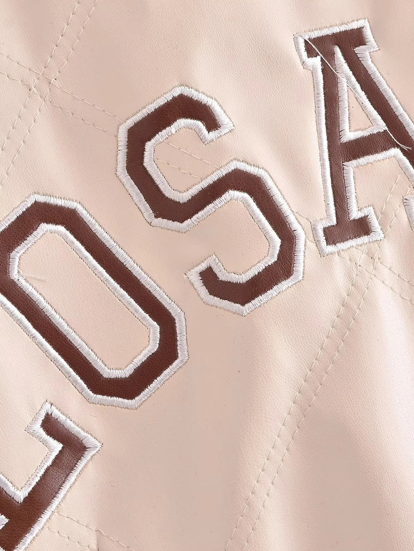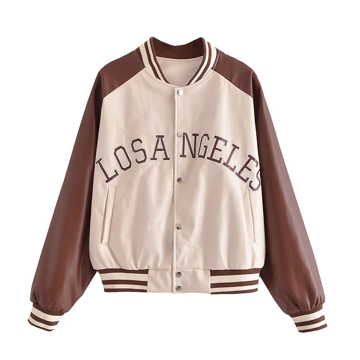 Directement inspirée des campus californiens, cette veste teddy bicolore crème et chocolat capture l’essence du style varsity authentique. Le lettrage « LOS ANGELES » brodé fait écho aux équipes légendaires de la côte ouest, tandis que la construction matelassée en losanges ajoute une touche de raffinement à cette pièce emblématique.