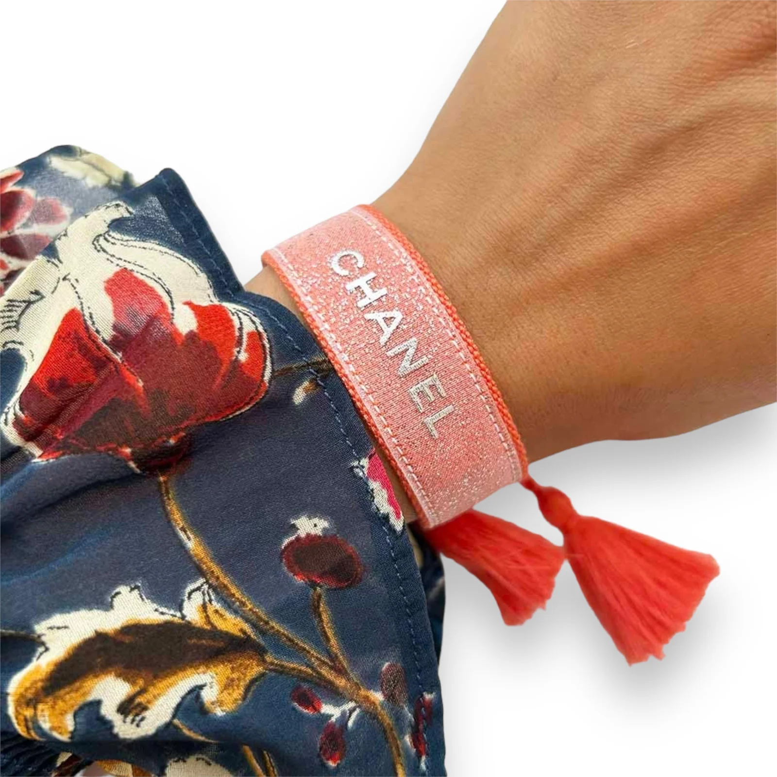 Coton – Polyester Orange – Argenté Ne pas porter sous l’eau Ajustable entre 16cm et 26cm / Largeur : 2cm