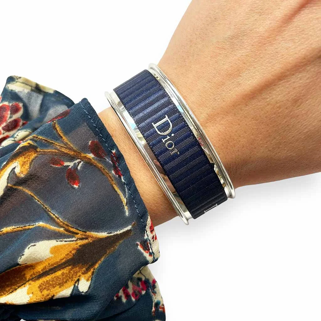 Laiton vernis – Polyester Argenté clair – Bleu marine – Argenté Ne pas porter sous l’eau Ajustable / Largeur : 24,5mm